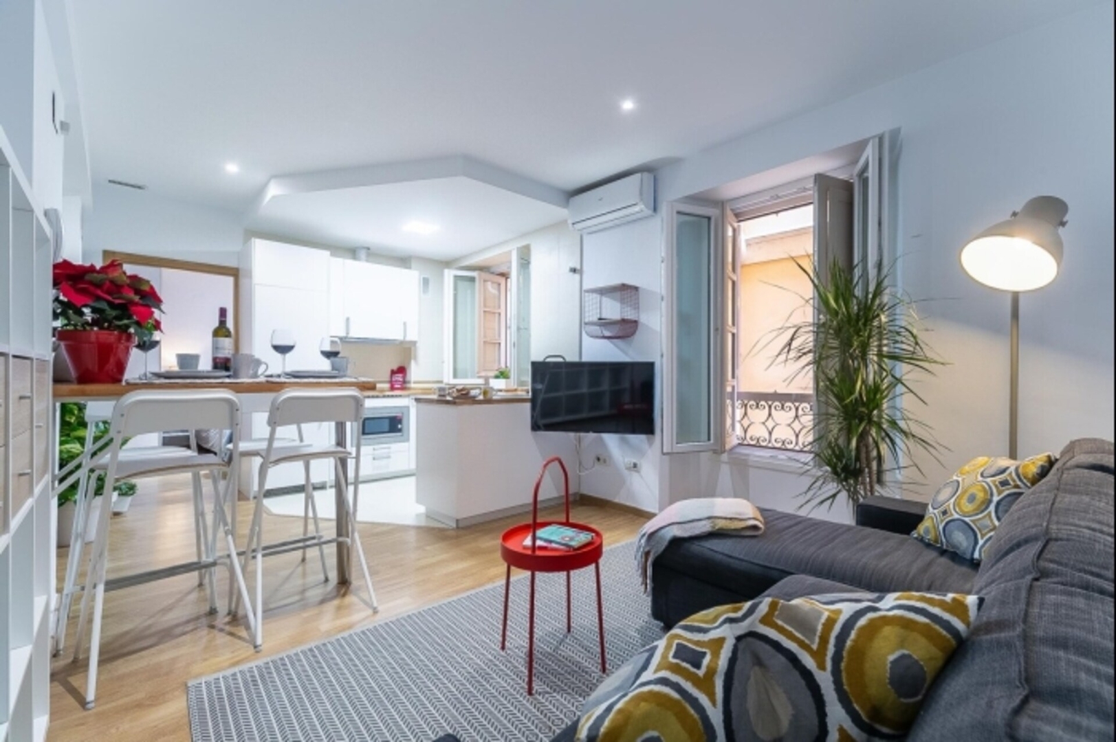 Este acogedor apartamento, totalmente renovado, cuenta con un dormitorio con cama doble y un salón con sofá cama doble, y tiene capacidad para cuatro personas. Dispone de una moderna cocina americana totalmente equipada con utensilios y electrodomésticos, como nevera con congelador, lavadora, cafetera, microondas, tostadora y hervidor de agua.